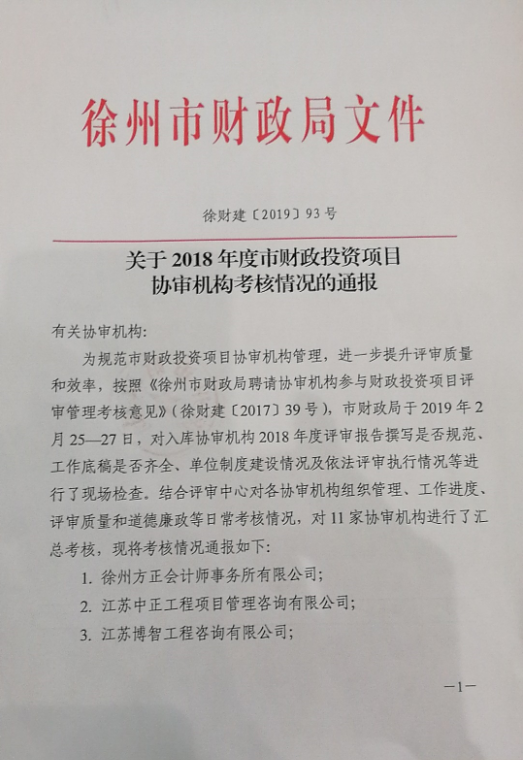導讀:近日,由徐州市財政局組織的協(xié)審單位評比中,我所憑借自身在組織管理、工作進度、評審質(zhì)量、道德廉政等方面的優(yōu)異表現(xiàn),榮獲本次評比第一名的好成績。我所員工獲悉消息后,備受鼓舞。首先,使我們覺得我所嚴抓管理、